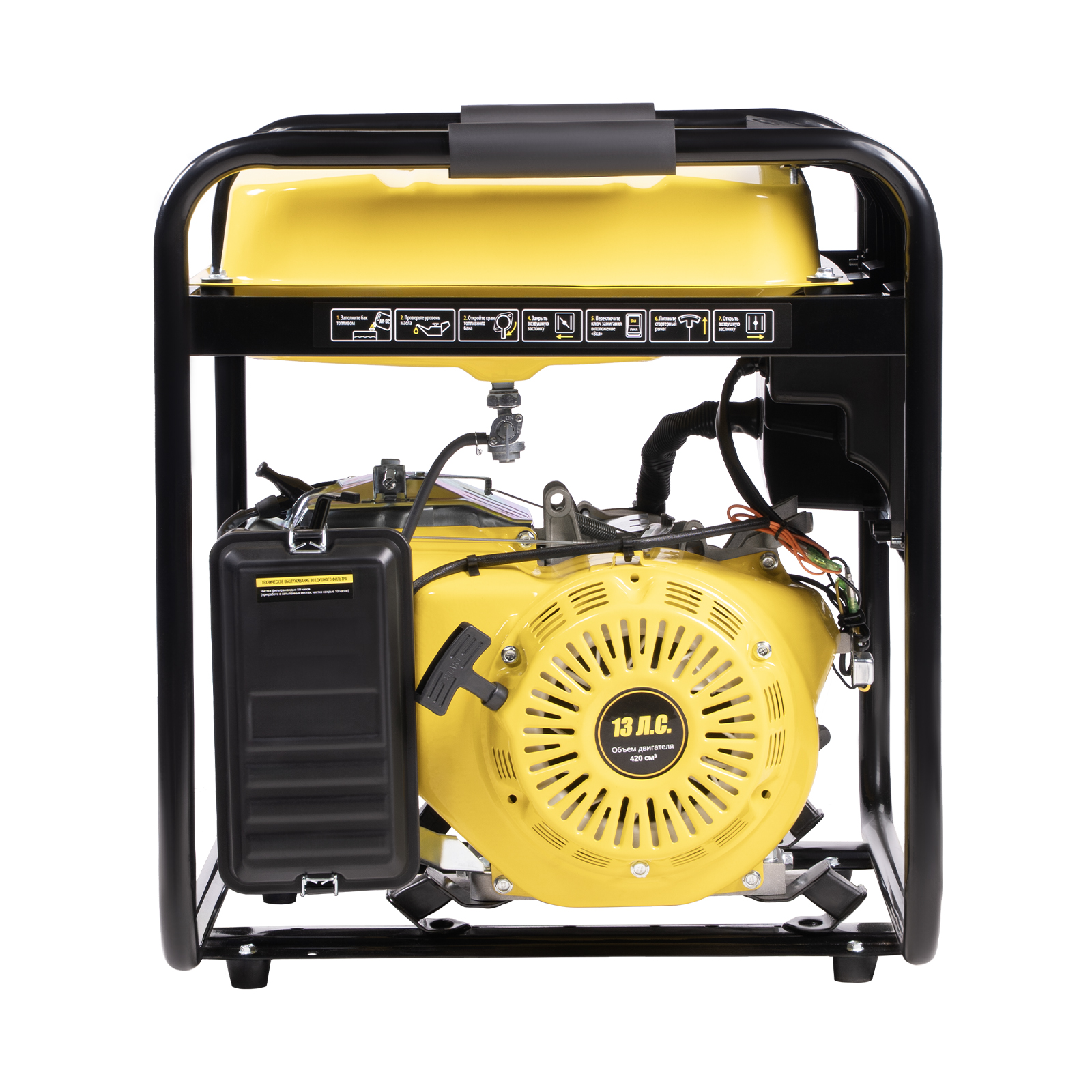 ДОЛГАЯ АВТОНОМНАЯ РАБОТА: увеличенный топливный бак на 35 л и экономичный 4-тактный двигатель с объемом 420 см³ обеспечивают до 15 часов непрерывной работы без дозаправки.