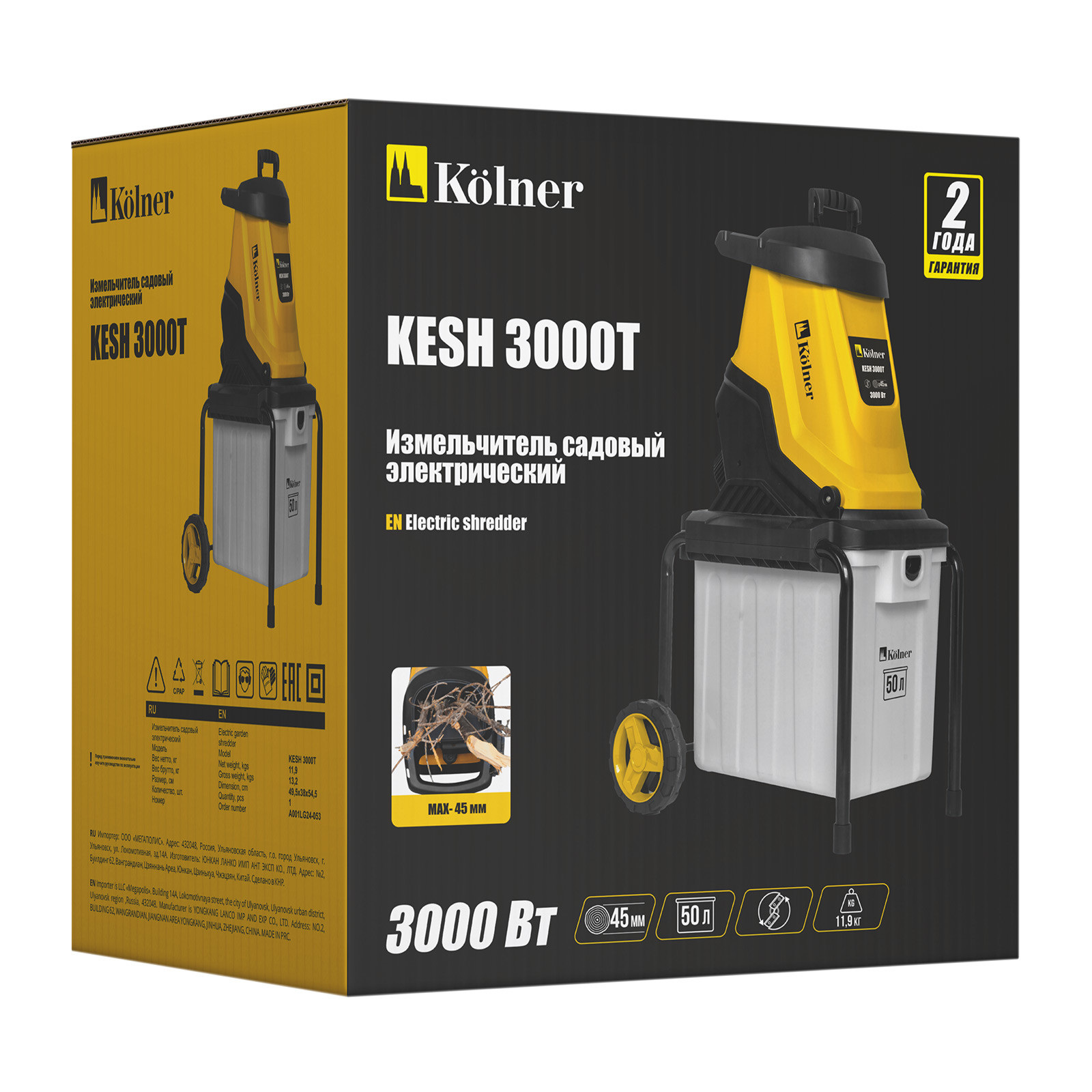 Потребляемая мощность, Вт 3 000 Напряжение сети / Частота, В/Гц 220-240 ~ /50 Длина сетевого кабеля, м 0,35 Габаритные размеры, мм 560x440x935 Масса, кг 11,9 В комплекте измельчитель, контейнер пластиковый 50 л, толкатель, колеса (2 шт.), руководство по эксплуатации