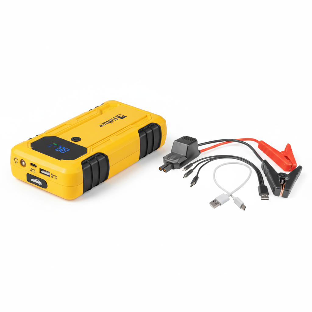 - КОМПЛЕКТАЦИЯ: силовые пусковые провода, кабель зарядки, кабель зарядки электронных устройств 3 в 1, кейс