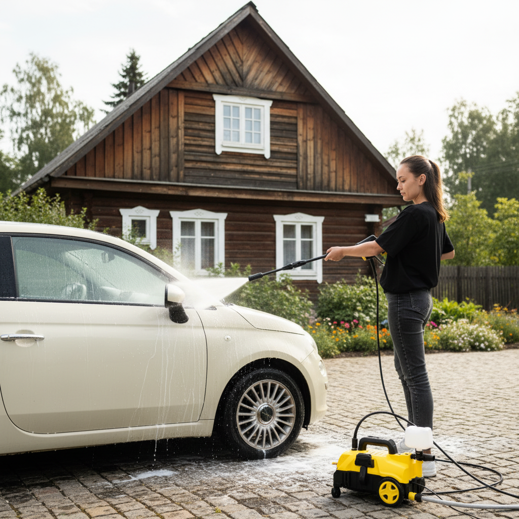 ШИРОКИЕ ВОЗМОЖНОСТИ: идеально подходит для мытья автомобилей GOLF-класса, велосипедов, самокатов, мопедов и другой техники, очистки садового инвентаря, дорожек, садовой мебели, фасадов и других поверхностей.