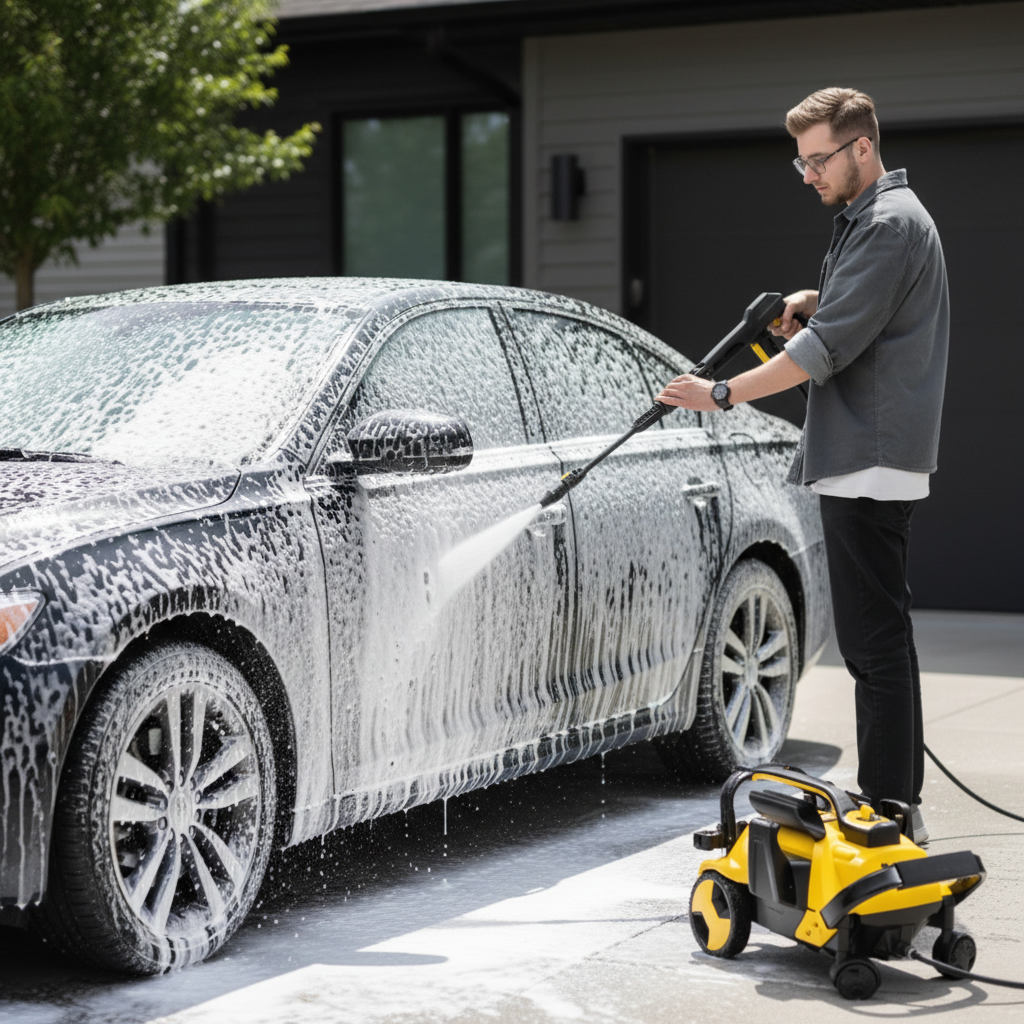 ШИРОКИЕ ВОЗМОЖНОСТИ: идеально подходит для мытья автомобилей (кроссоверов), велосипедов, самокатов, мопедов и другой техники, очистки садового инвентаря, дорожек, садовой мебели, фасадов и других поверхностей.
