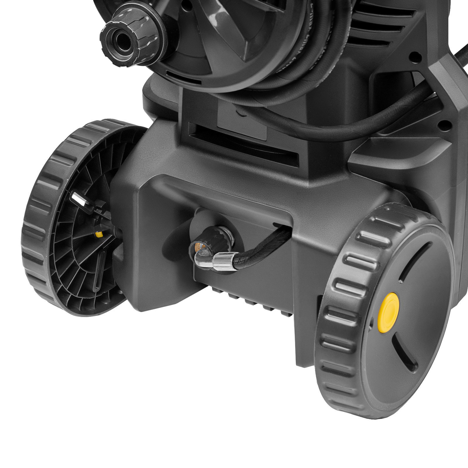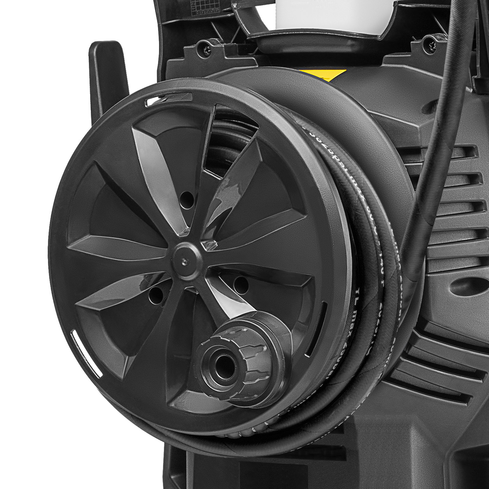 - Удлинённый шланг 8 м и задний барабан для сматывания шланга