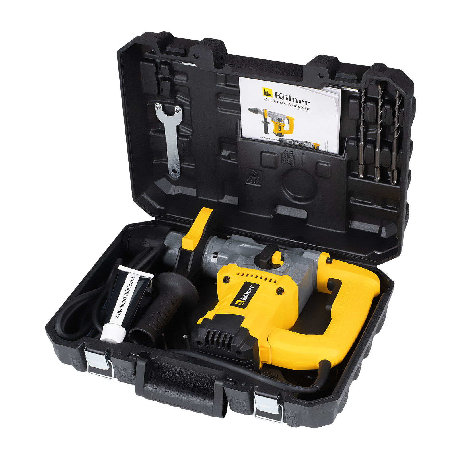 - РАСШИРЕННАЯ КОМПЛЕКТАЦИЯ: инструмент поставляется в пластиковом кейсе с набором буров и смазкой.