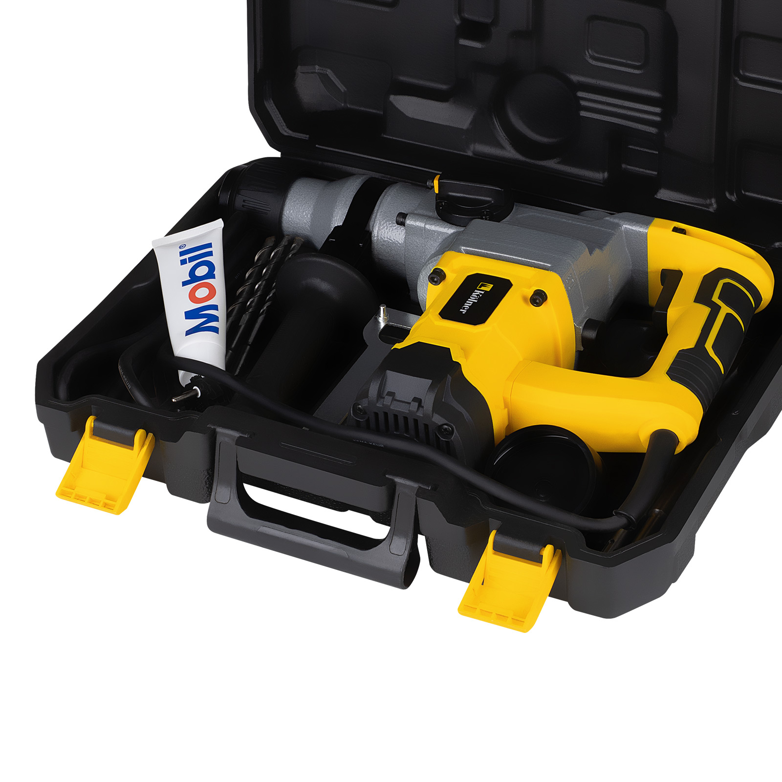 - РАСШИРЕННАЯ КОМПЛЕКТАЦИЯ: инструмент поставляется в пластиковом кейсе с набором буров и смазкой.